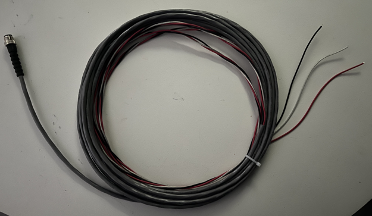 This cable has three copper conductors to provide +12V power, ground, and the LED "trigger" from the Ericsson router. One end of this cable terminates with a male M12 connector that screws into the Splitter Box.