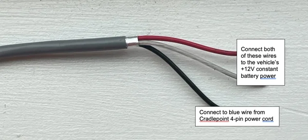 - Connect BOTH the red and white conductors from the 3-Conductor Cable to the vehicle's +12V constant battery or ignition power